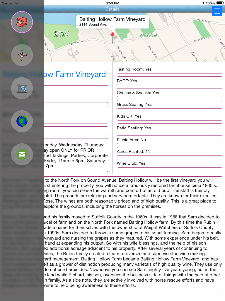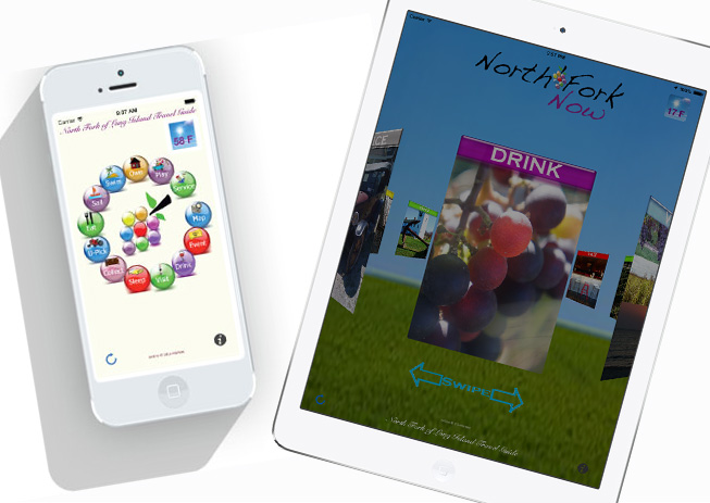 The iPad version offers a larger view to display the beauty of the North Fork, while the iPhone version allows for portability when you are traveling.